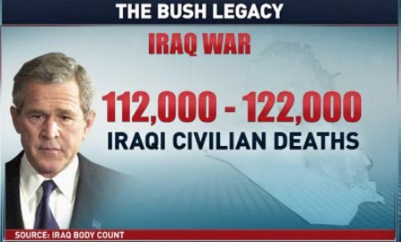 • Deaths and Injuries: Causing the deaths of 4,475 Americans, 32,331 wounded Americans and the deaths of over 112,000 Iraqi Civilians