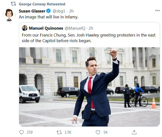 No one forced Josh Hawley to betray his oath to his country. He helped perpetuate #TheBigLie and he is complicit in the destruction that it caused.