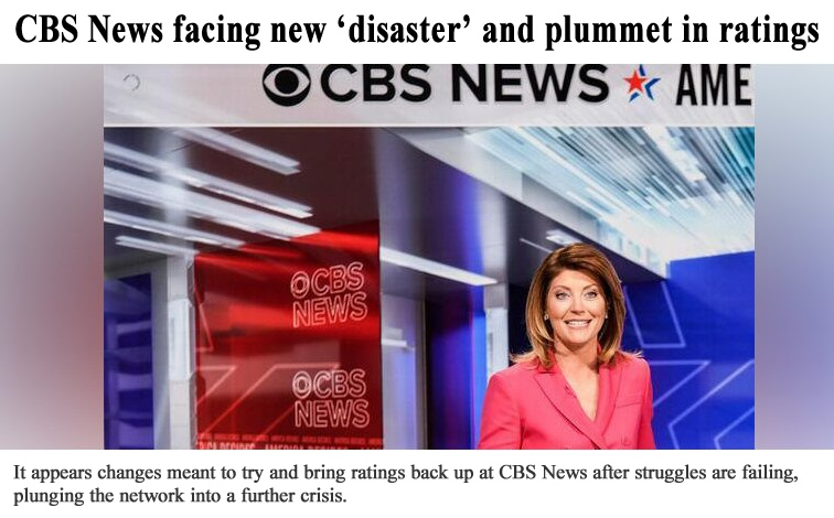 Per the above article: CBS News facing new ‘disaster’ and plummet in ratings after ‘failing’ experiment