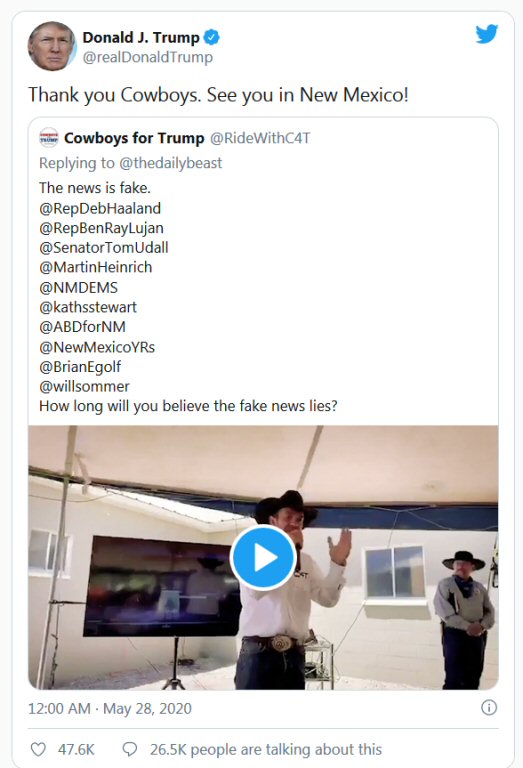 Trump shows his approval of the “Cowboy For Trump” comment by retweeting.