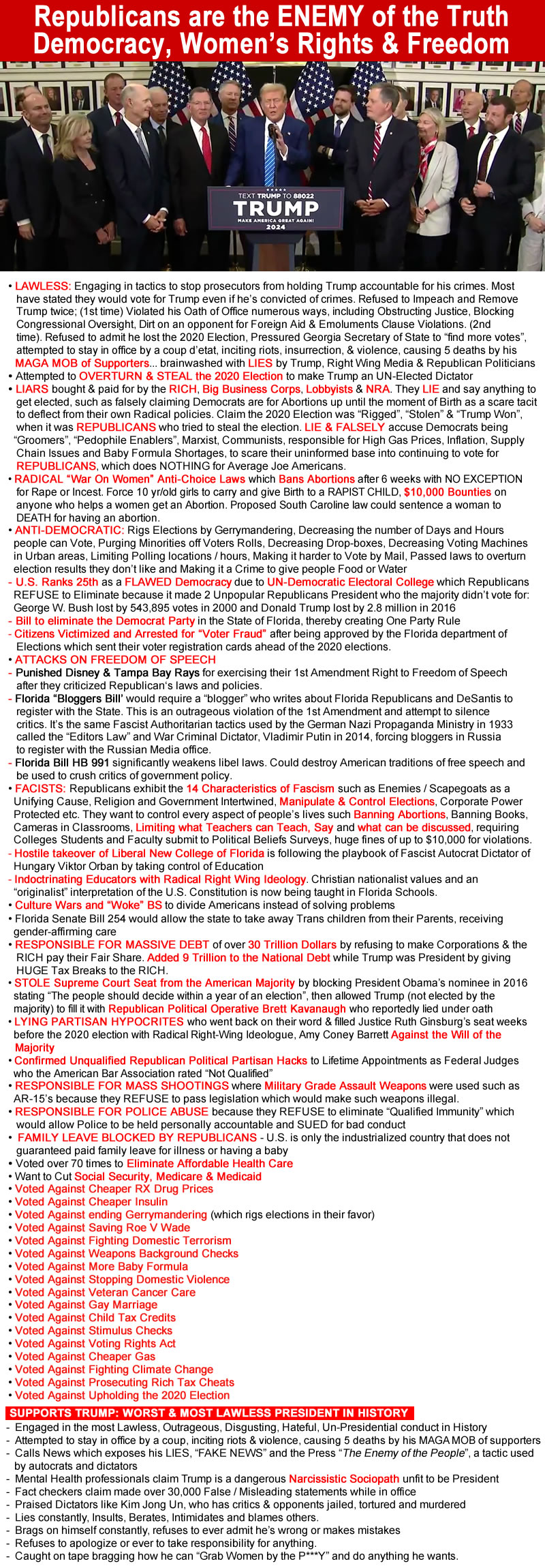 ALL of this outrageous behavior is the fault of REPUBLICANS who has supported and enabled him