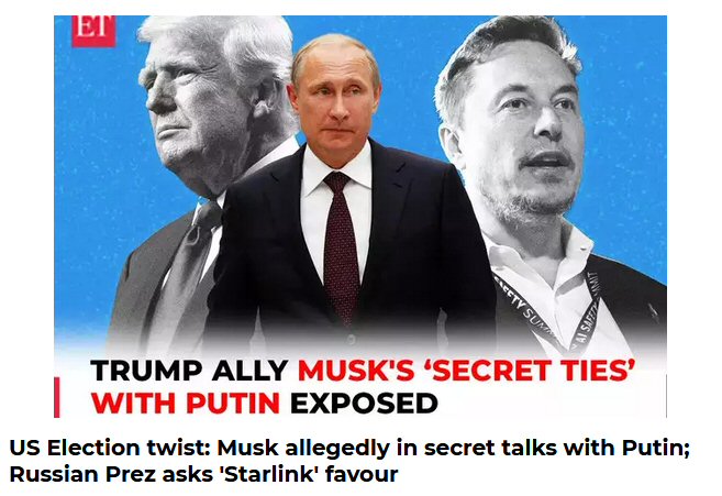Per the above article; “A Wall Street Journal report claims Musk has been in contact with Putin since 2022, discussing personal and geopolitical matters”.