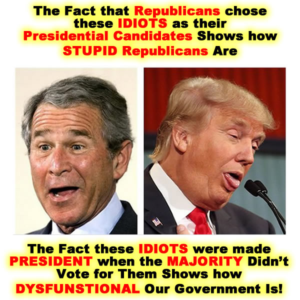 Illegitimate President George W. Bush Stupidity Compilation! They don’t get much dumber than this dip-shit who wasn’t voted for or elected by the Majority. Another instance of what a fucked-up government we have which made the Republican Idiot who got the least votes, the “winner” screwing over the majority.
