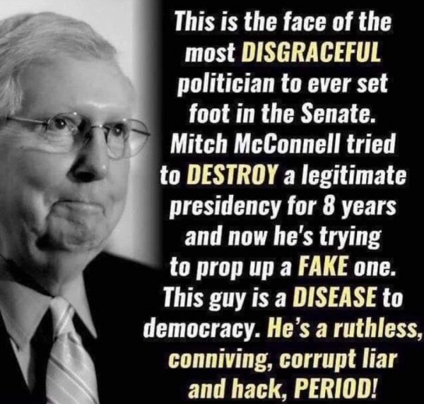 This proves McConnell don’t give a DAM about the American people or respect their wishes. The Majority voted for and supported President Obama, and this no good piece of shit McConnell did everything possible to prevent Obama from being able to pursue the work he was elected to do.