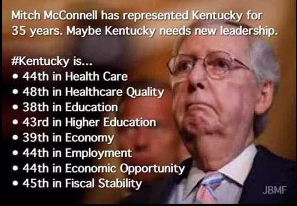 Kentuckians are Stupid for voting for Mitch McConnell… the worst Senator in History who only cares about the RICH and does NOTHING for average Joe Kentuckians.