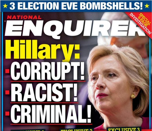 The claim that Hillary is a Racist was a total lie. Hillary was always an advocate & defender of minorities… the same cannot be said for Trump. Apparently Trump was pissed off that people were calling him a Racist, so he retaliated by calling Hillary a Racist, then the National Enquirer printed the “Corrupt, Racist, Criminal” edition to help Trump.