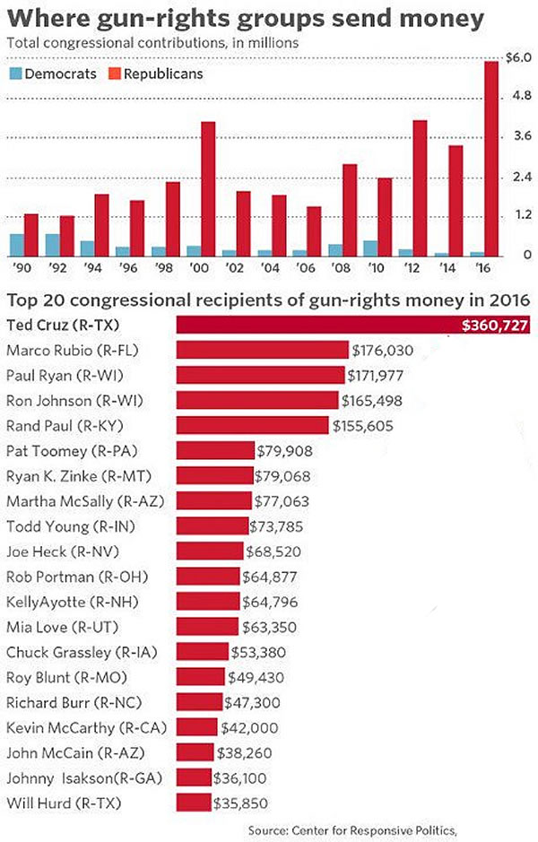 The NRA uses intimidation tactics to make Republican Politicians do what they want as reported in the book “How the NRA Terrorizes Congress”.