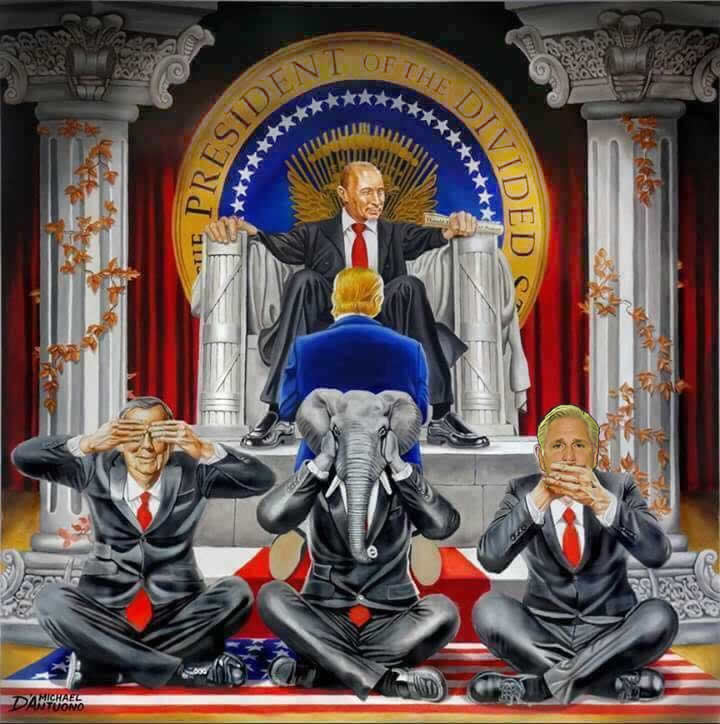 This graphic accurately depicts how Trump was subservient to Russia / Putin’s wishes while Republicans did doing nothing to “Defend and Protect” the United States from this foreign adversary which is dedicated to our destruction.