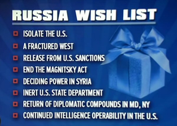Here’s a list of things Putin and Russia has gotten as a result of helping Trump to become President.