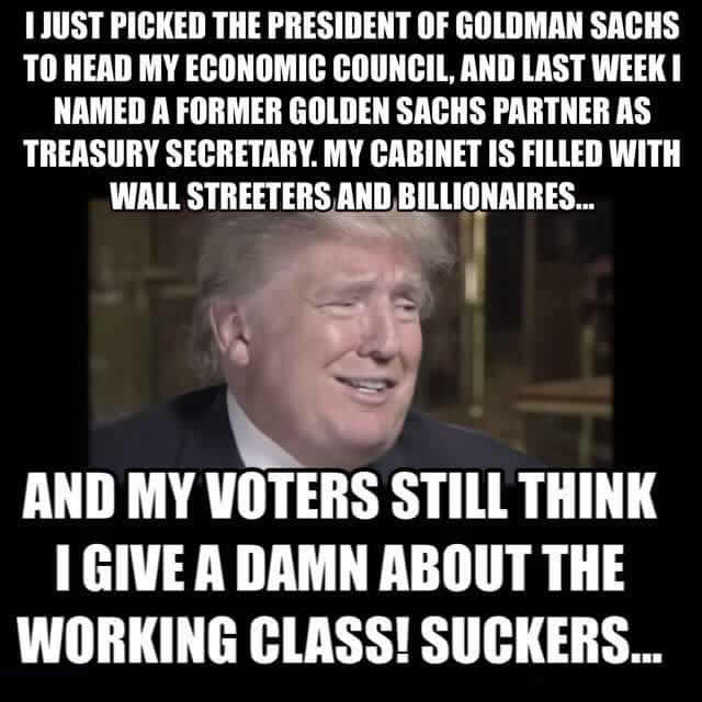 Donald Trump’s Cabinet Picks are hard line Republican Millionaires and Billionaires who don’t give a dam about average Joe Americans.