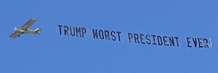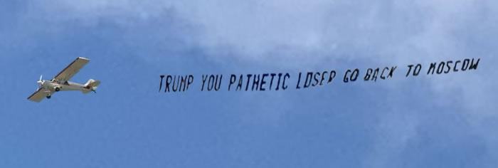 Trump trolled by Banner Planes above his Mar-A-Lago retirement home with captions like “Worst President Ever” and “You Pathetic Loser, Go Back to Moscow”