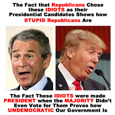 If it weren’t for the UN-Democratic Electoral College and Republicans Rigging Elections by Gerrymandering, Voter Obstruction, Voter Purges, etc we wouldn’t have had incompetent idiots like Bush & Trump as President, Republicans in charge of our Government, and all of the “conservative” Federal Judges they installed which do not represent the values of the American Majority.
