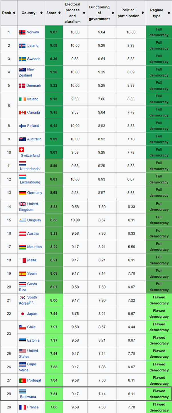 globally according to the Economist Intelligence Unit’s Democracy Index