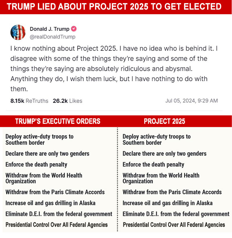 Since Trump was sworn in as President on Jan 20, 2025, his executive orders are proving that he LIED to the American people about “knowing nothing” about Project 2025 to get elected. Since Trump lied to get elected, he defrauded the American people and therefore obtained the Presidency by fraud and deception.